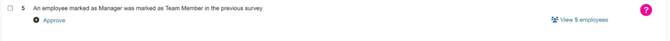 Examples of warnings could include an employee marked as a Team Member that has a salary band of £100,001-£150,000 or a Team Member who was previously a manager.