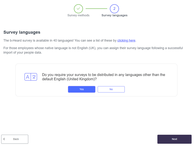 Any employees that have a different language selected will receive their survey comms in this language.