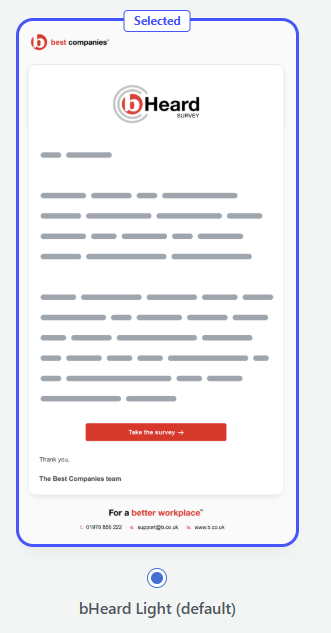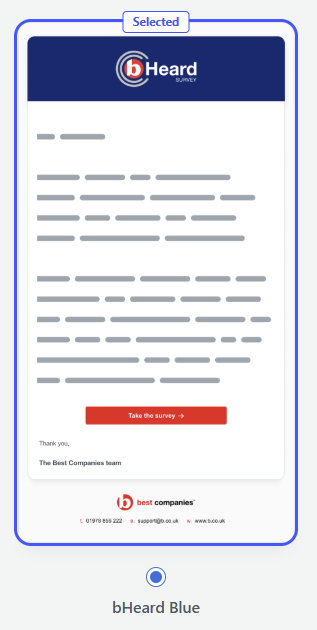 You can view and download the contents of the survey invitations in this section. Click the Send test invitation button to receive a copy of the email, or Download Word doc button for a copy. Click Next to move to the next section.