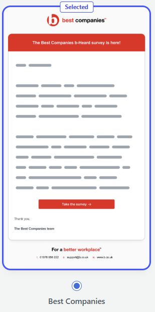 Under the Announcing your survey section, you can copy or download a template message to be sent to your business by your CEO. You can also download the following posters:
